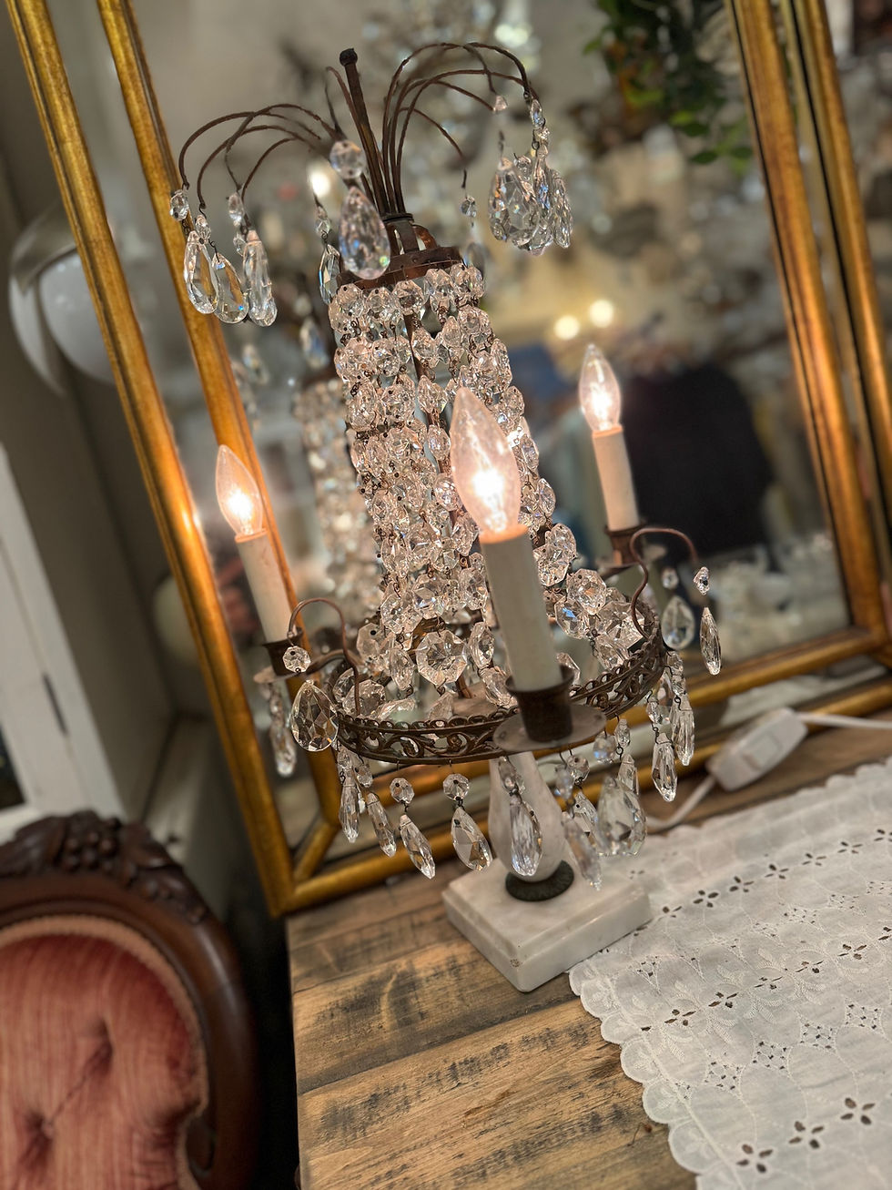 アンティーク エンパイア ブロンズ クリスタル テーブルランプ